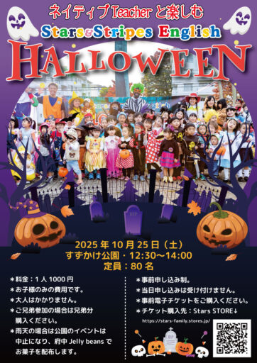 今年は公園内でパレード、ゲーム、trick or treat をおこないます